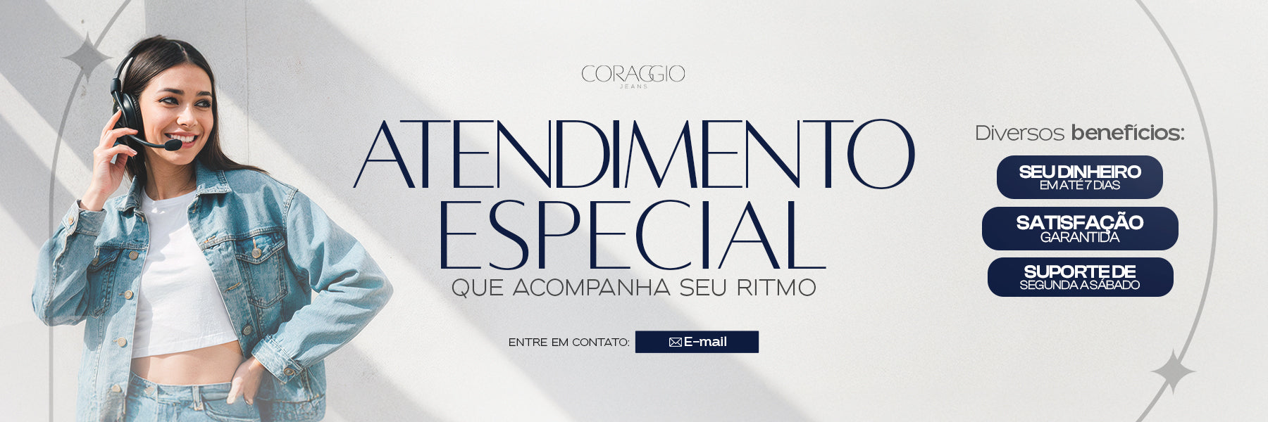 Coraggio Jeans é uma marca de jeanswear que nasceu para desafiar o comum. Seu compromisso é com a durabilidade, o caimento impecável e a confiança de vestir algo que permanece com você. A tecnologia exclusiva Coraggio Memoria combina modelagem precisa e tecidos com memória de forma, garantindo que o jeans nunca laceie, nunca deforme. O conceito da marca é claro: "Você muda. O Coraggio permanece."
