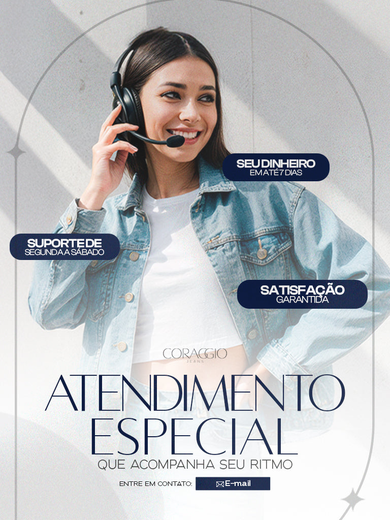 Coraggio Jeans é uma marca de jeanswear que nasceu para desafiar o comum. Seu compromisso é com a durabilidade, o caimento impecável e a confiança de vestir algo que permanece com você. A tecnologia exclusiva Coraggio Memoria combina modelagem precisa e tecidos com memória de forma, garantindo que o jeans nunca laceie, nunca deforme. O conceito da marca é claro: "Você muda. O Coraggio permanece."